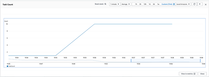 - I’ve set up step scaling based on CPU consumption. More CPU used — more tasks will be added